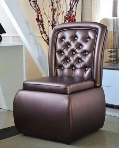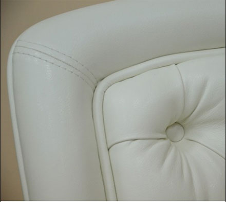 Мягкое кресло может выполняться из эластичной экокожи на тканевой основе. Выполняется как с пуговицами, так и со стразами.