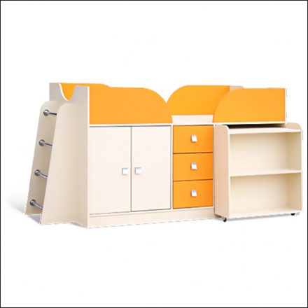 Мебель для детской комнаты должна быть функциональной, безопасной и удобной. Мебельная фабрика «Диана Руссо» учитывала эти факторы для разработки моделей мебели и выпустила такие серии как «Кроха» и «Непоседа». Основной цвет был выбран дуб млечный, это светлый и приятный глазу оттенок, который можно сочетать с яркими цветами, такими как лайм, манго и голубой. Модели могут быть выполнены как в комбинированном, так и однотонном варианте цветовой гаммы. Габаритные размеры: -длина: 220 см -ширина: 104 см -ширина с разложенным столом: 174 см -высота : 109 см -размер спального места: 190х80см