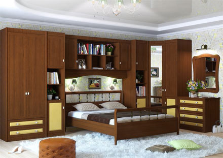 51.202.02 Шкаф двухдверный - 1 шт. 51.201.03 Шкаф однодверный - 2 шт. 51.601 Шкаф навесной - 1 шт. 51.104.01 Кровать 1600 - 1 шт. 51.203.03 Шкаф угловой - 1 шт. 51.201.11 Шкаф однодверный - 1 шт. 51.401 Комод - 1 шт. 51.604 Зеркало - 1 шт.
