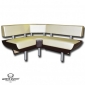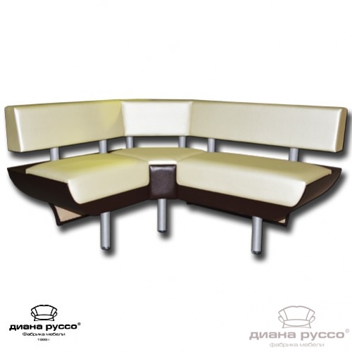 Кухонный уголок КУ-4 — это идеальное дополнение к интерьеру любой современной кухни, выполненное в стиле хай-тек. Дизайн удобного дивана, который может быть выполнен, как равносторонним, так и с левым или правым размещением угла, удачно дополняют металлические стойки, на которых лежит спинка, а выполненные из того же материала ножки опоры создают ощущение прочности и надежности конструкции. Под сидениями дивана располагаются два вместительных короба, в которых вы можете хранить как бытовые мелочи, так и заготовки на зиму. Необычный элемент дизайна КУ-4 — классический кухонный стол, ножки которого обтянуты кожзаменителем, соответствующем основному цвету обивки дивана. Горизонтальное ребро жесткости стола не только делает всю его конструкцию более надежной, но и образует дополнительную полку. Торцы столешницы обработаны специальным влагостойким врезным кантом. Устойчивые, оригинальные по форме пуфики создают два дополнительных удобных посадочных места.