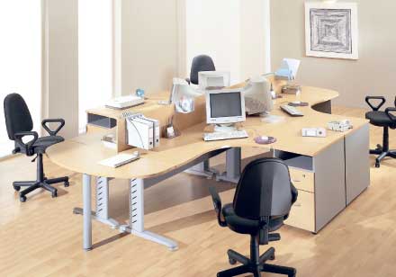 Множество вариантов столов позволяет распределять рабочее пространство до бесконечности. Невысокие шкафы позволяют сохранить в офисе ощущение простора.