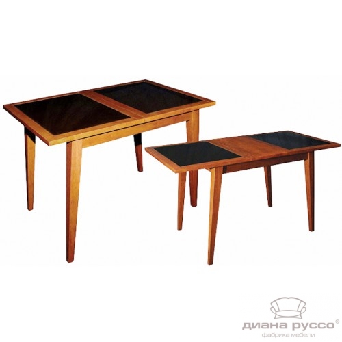 Рамка столешницы обеденного стола изготовлена из массива дерева гевеи. В центре коричневое каленое стекло.