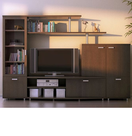Гостиная «Милан 3» Вся гостиная мебель сделана в модном современном стиле, который на сегодня становится все более популярным на российском рынке. Особенность модульной гостиной — радиусные элементы. Эта современная мебель отлично подходит и для обустройства помещений с небольшой площадью. Матовое стекло, бежевые тона зрительно увеличивают пространство комнаты. Стойка под ТВ «Милан-3» Цвет: бук, венге Материал: ламинированная ДСП Габариты (д/в/ш): 2600×1734×500мм Производитель: Россия Цена: 16 195 руб.